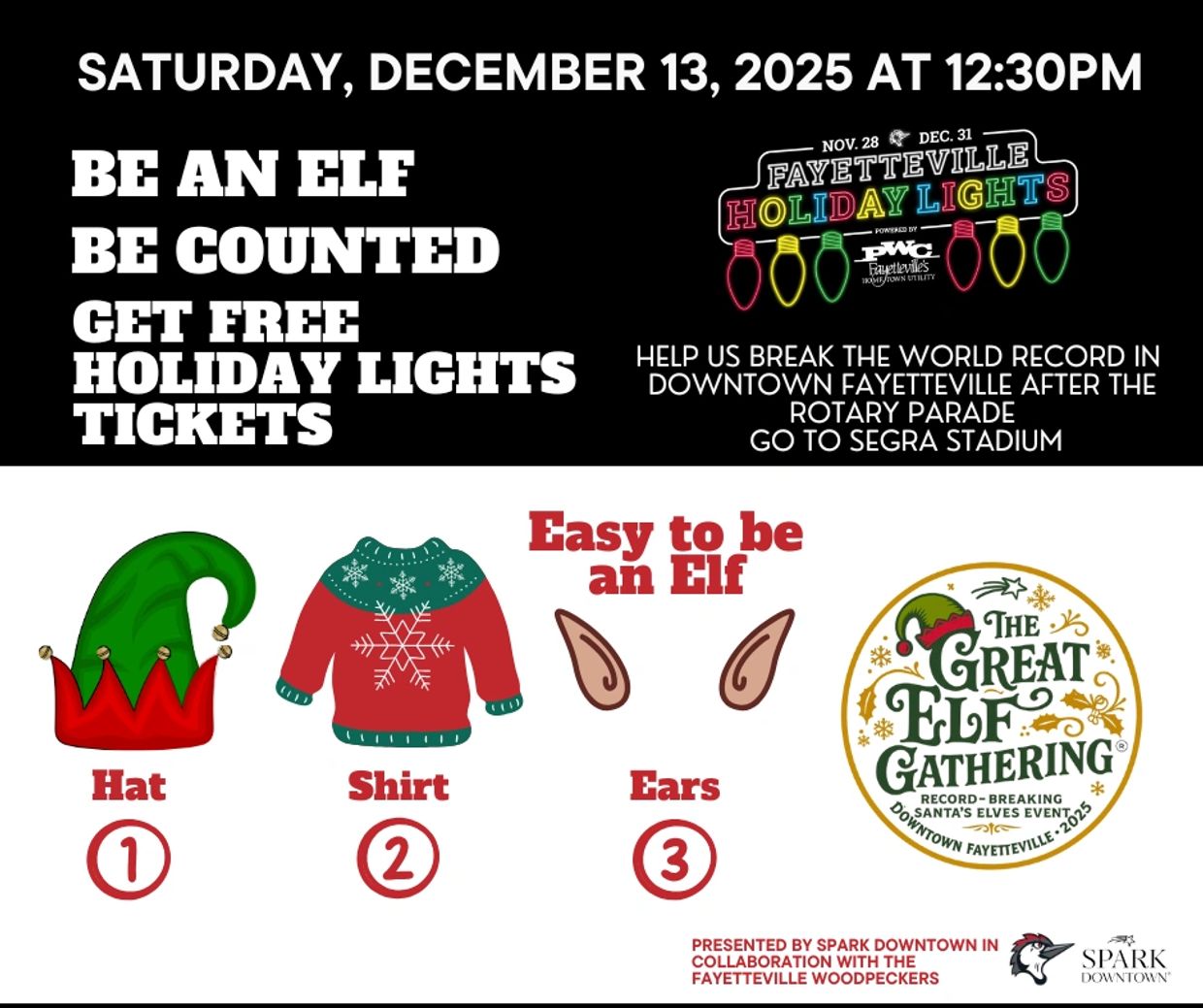 Come dressed as an elf. Bring your family. Help Fayetteville make history.